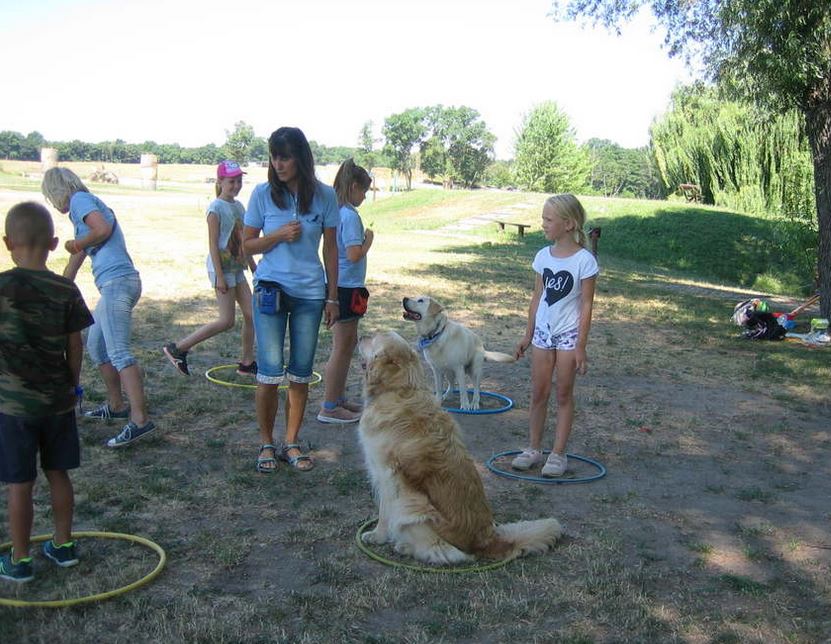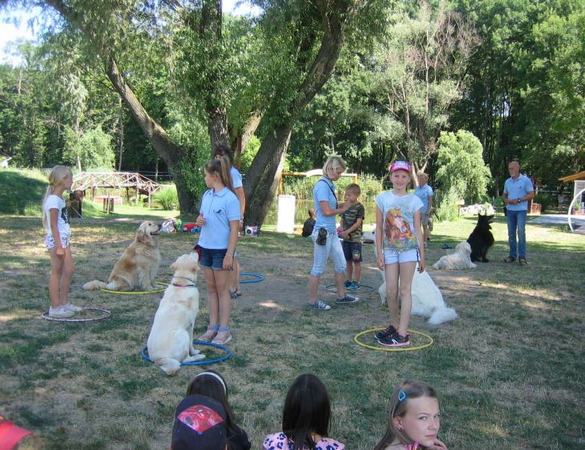 Az összeszokott párosok – Mese, a golden retriever és Papné Takács Ágnes óvónő, valamint Éden, a labrador retriever Ramasz Vanda pedagógus felvezetésével – egy zenés trükkösszeállítással mutatkoztak be. A táborozók nagy örömmel vettek részt Mesével és Ágnessel együtt egy zenei tudáspróbán, és a kutya azzal is elbűvölt mindenkit, hogy egy elhangzott feladatra megmutatta, mennyire okosan számol fejben. Éden és Vanda pedig a méhek ökológiai szerepére és védelmére hívták fel a figyelmet, és a négylábú azt is megmutatta, hogyan lehet szelektíven gyűjteni a hulladékot, illetve mit milyen színű tartályba kell bedobni. Nagy sikert aratott a kutyafelvezetők és a négylábúak zenés összeállítása, melyből látszott, mi mindenre képesek a kutyák.