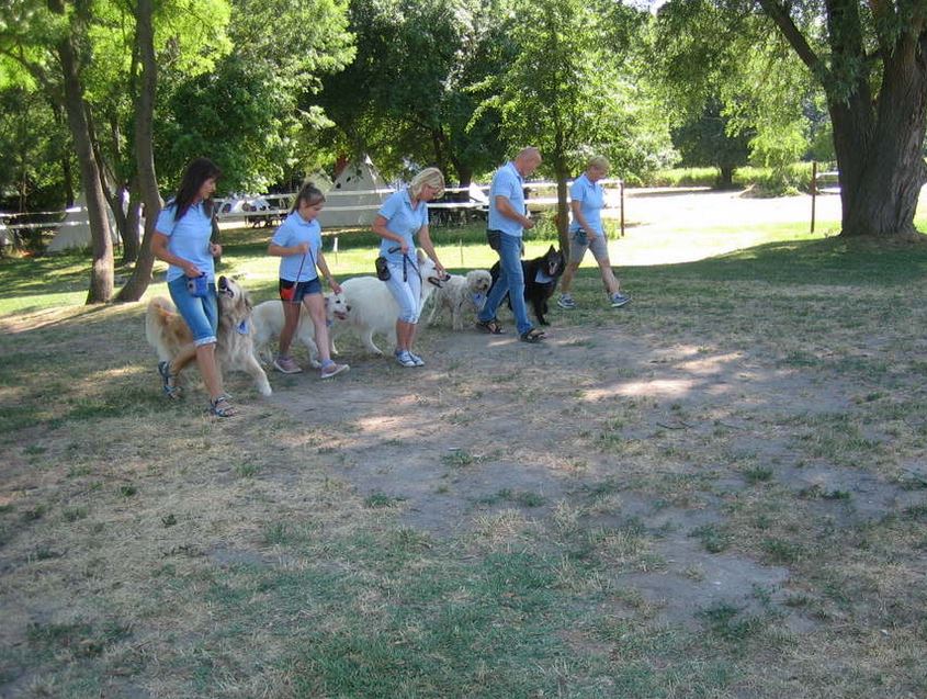 Mindezek után a gyerekek alagutat formáztak, melyben a kutyusok többször is átszaladtak, az apróságok nagy üdvrivalgása és sok simogatás közepette. A játékos foglalkozásokon kívül szívesen látták a négylábúakat egy szabadidőparkban, illetve lovardában is, ahová Pap Károly kutyakiképző vezetésével, jól képzett családi kutyákkal a csehbányai kutyasuli is elkísérte őket. Elbűvölt mindenkit, ahogyan Károly Démonnal, a fekete belga juhászkutyával és a fehér pulival, Buksival irányította a kis csapatot. Ramasz Lászlóné Mária pedig Cherryvel, a törpe pincserrel érkezett, Pap Maja, Ágnes és Károly unokája pedig Édennel sorakozott fel a produkcióhoz.